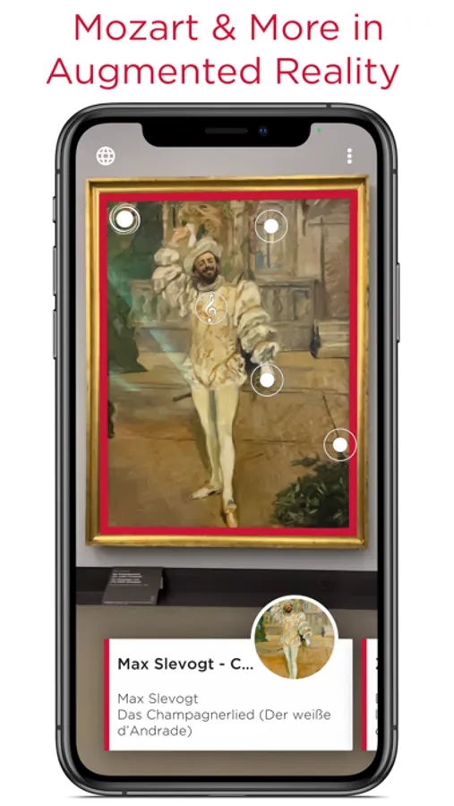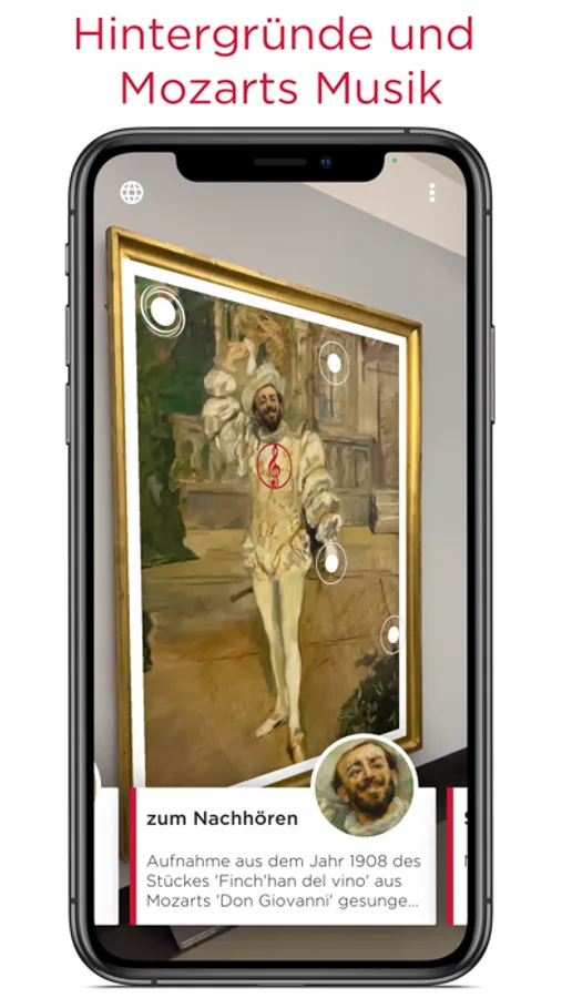Halten Sie einfach Ihr Smartphone oder Tablet auf die Exponate und erfahren Sie in Texten, Hör- und Videobeispielen mehr über Bildthemen, historische Hintergründe und Mozarts Musik.