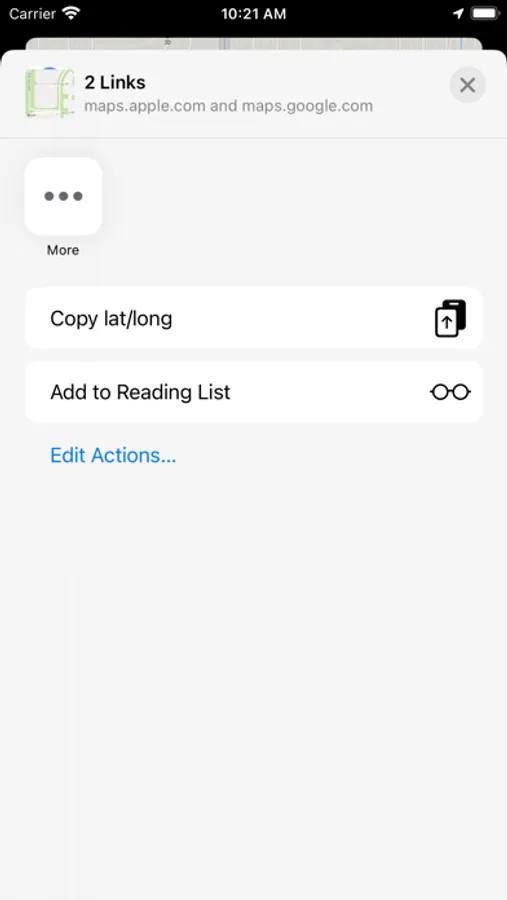 The Location App also lets you tap on your location identifiers to rapidly share the selected location data with anyone using a typical share sheet that includes sharing by text message, email, etc. The recipient taps on the sent link and your location will appear on Google or Apple maps, or in the What3Words App.
