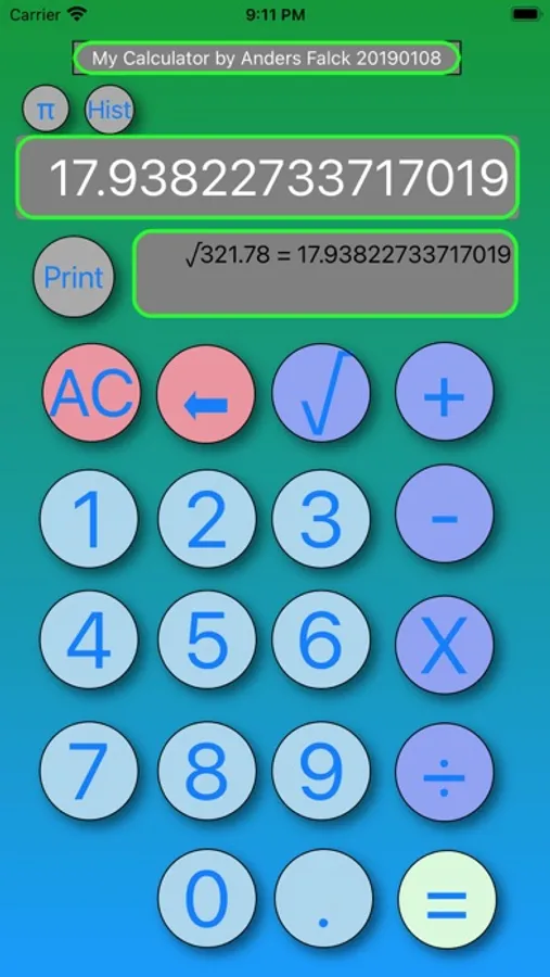 Simple Calculator that shows the history of calculations. Easy to use. An additional view with access to more apps on App Store from the same author