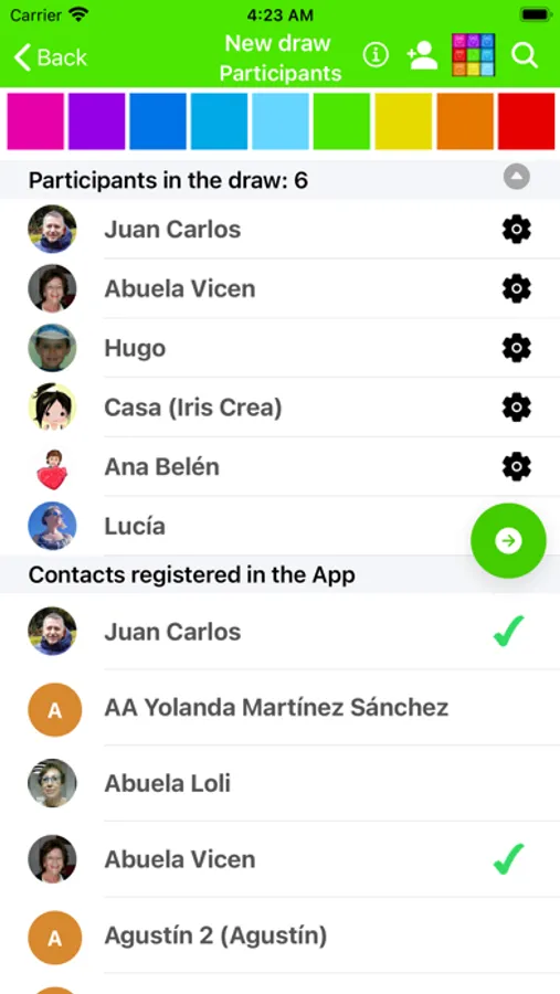 As you carry out raffles, the participants are saved in your agenda so that for subsequent raffles you simply have to select them from the agenda. In this way, the preparation of the draws is greatly simplified.