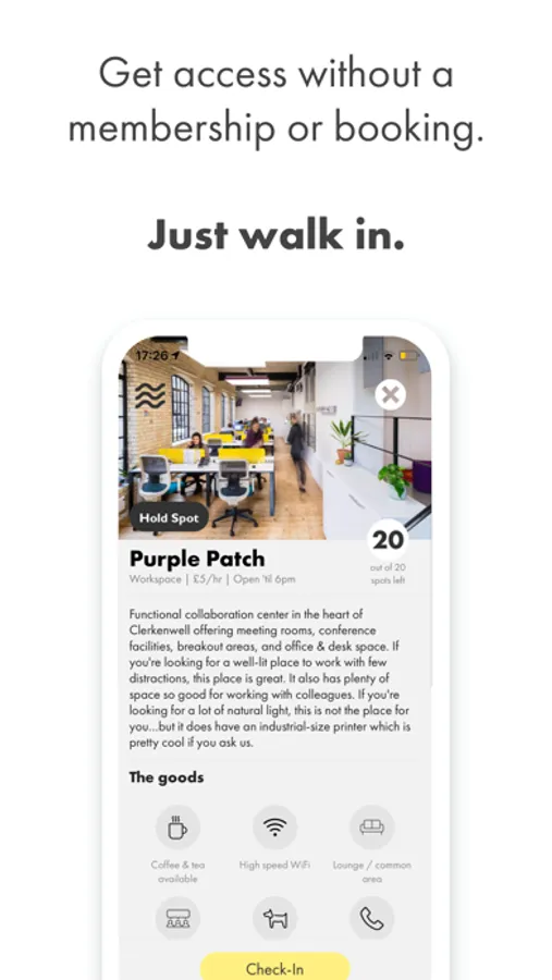 In a world where you can work from anywhere, Flow helps you get in everywhere. With Flow, you'll never have to worry about buying a membership that you rarely use, enquiring about availability, or wasting time in places that don't fit your vibe. Whether you need a place to work, to study, to think, to lift, to sweat, to play, to learn, or to elevate, Flow is the go-to-solution for finding and accessing the places you need when you want them.