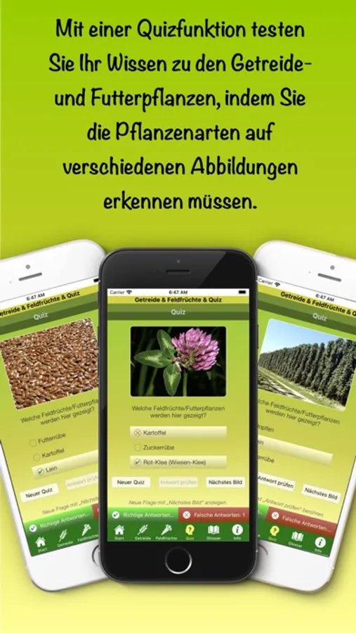 Vertieft wird das Wissen durch eine Quizfunktion, in der dem Bild der Pflanze der korrekte Name zugeordnet werden muss.