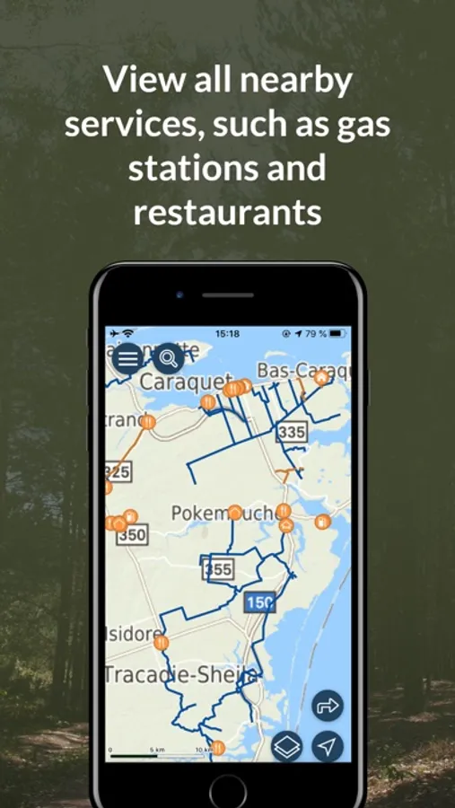 ► View nearby restaurants, gas stations, hotels, parking, and other services
