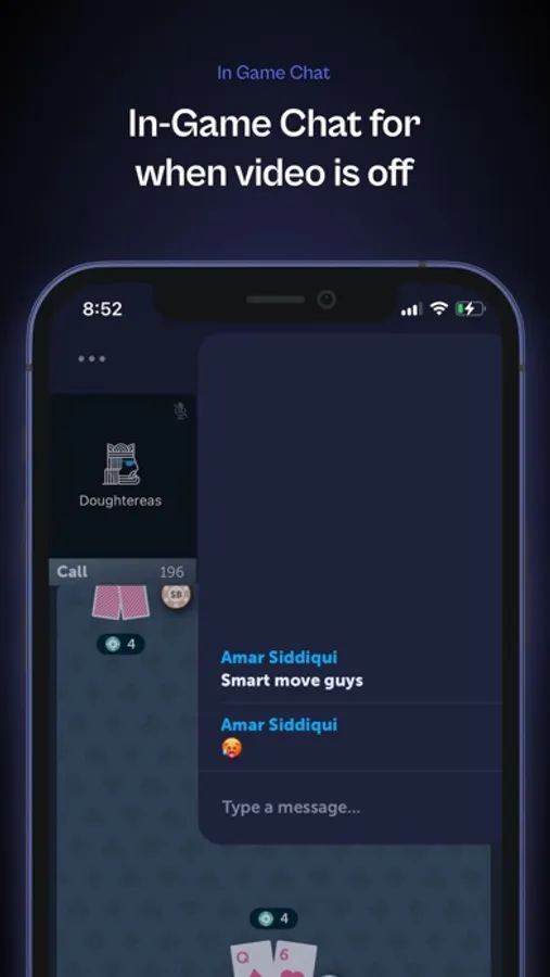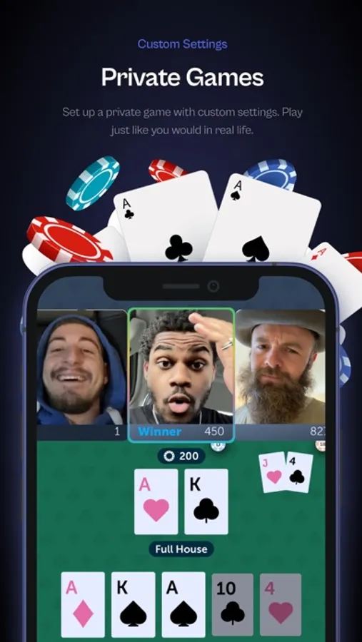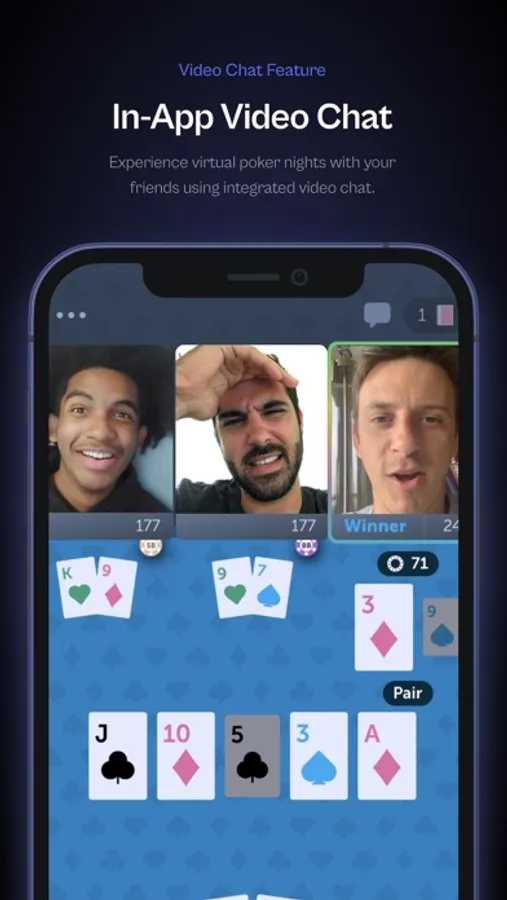 Poker Chill brings the face-to-face feel of poker to your phone. Play poker the way it was meant to be played - with video chat! Quickly join a game with people around the world, or spin a a private game with your friends. The search is over - you've found the perfect app!