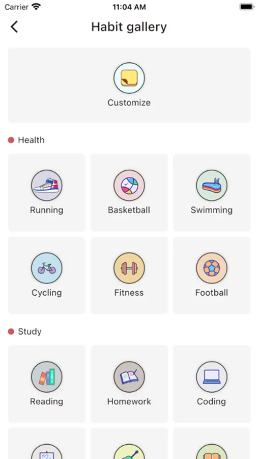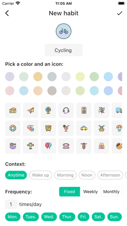 - Customize your habit. You can name the habit, choose a unique icon and the color;