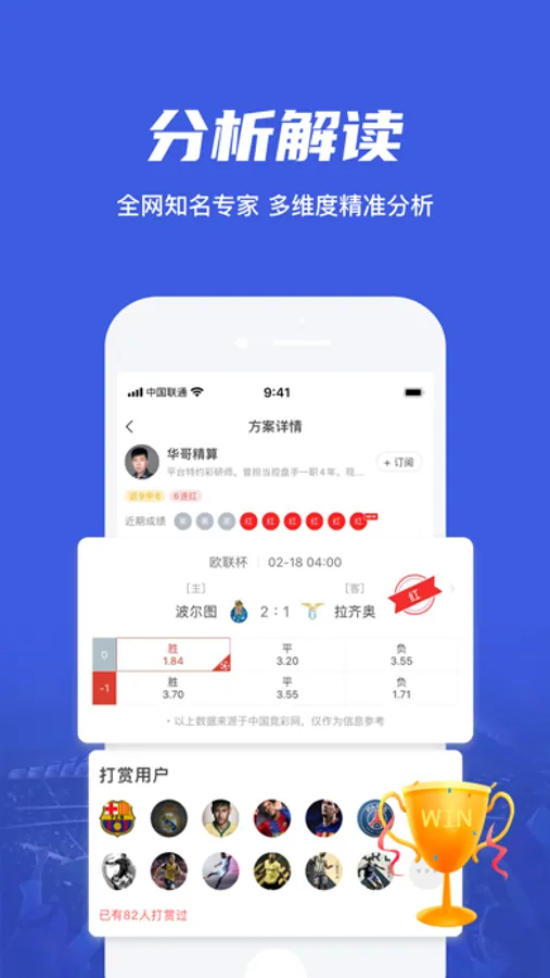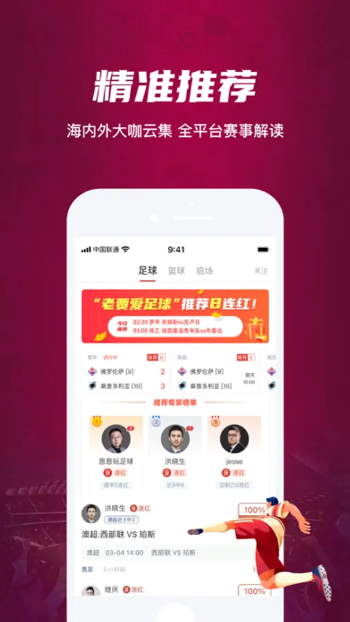 足球比分是一款专家分析推荐APP,为广大竞彩爱好着提供竞彩赛事推荐、数据分析等服务。