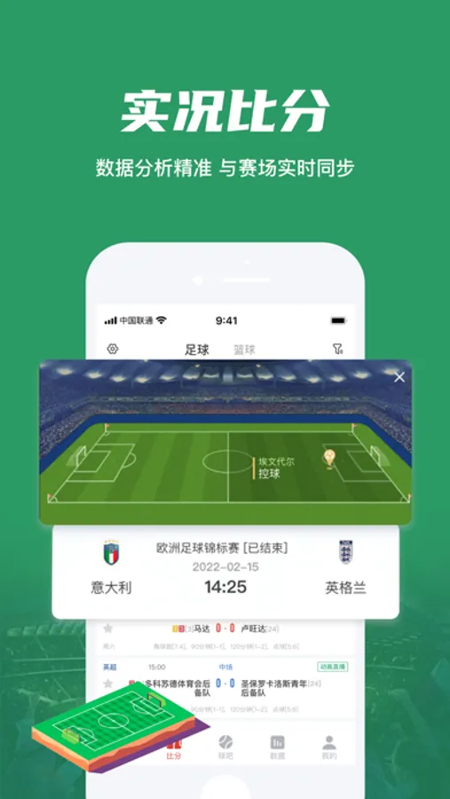 【赛事直播】比分数据与赛场实时同步,更有即时精准的进球事件展示,助你及时掌握趋势走向;