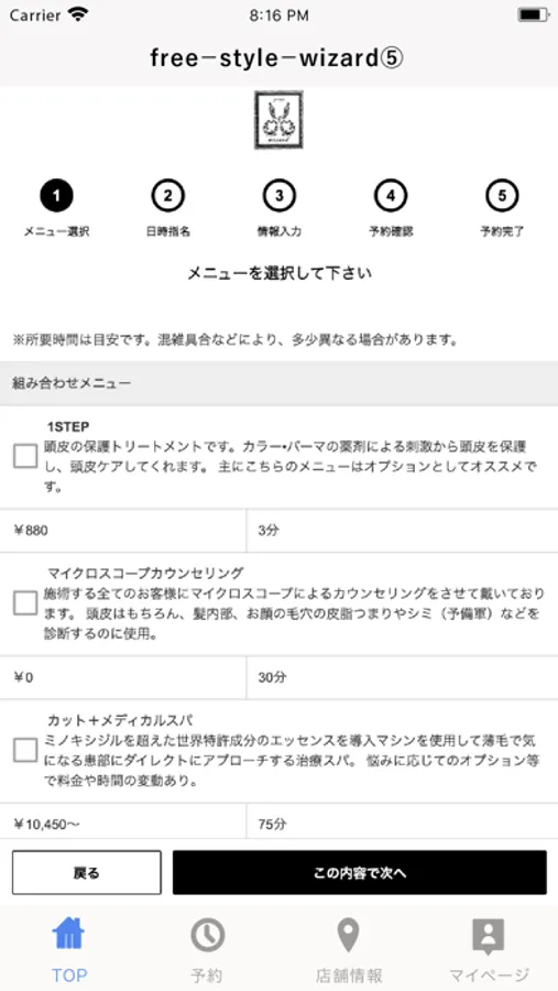 予約状況の確認やキャンセルがマイページ上から行えます。スタッフの登録が出来るので前もって担当者を登録しておけばマイページからスムーズな指名予約が可能です。
