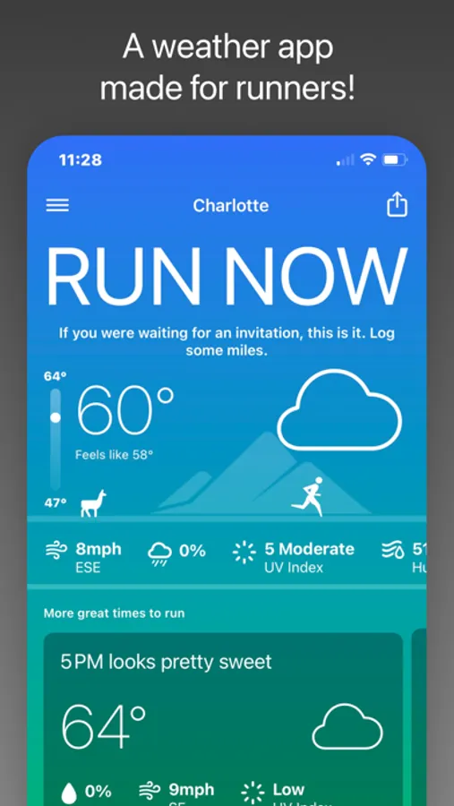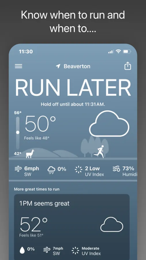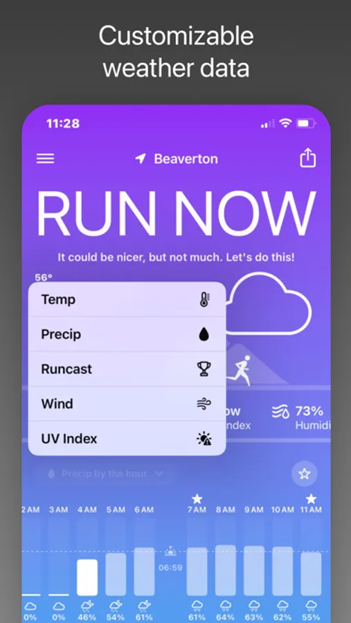 Using dependable weather data, Runcast helps you decide whether to run now, run later, or just run anyway.