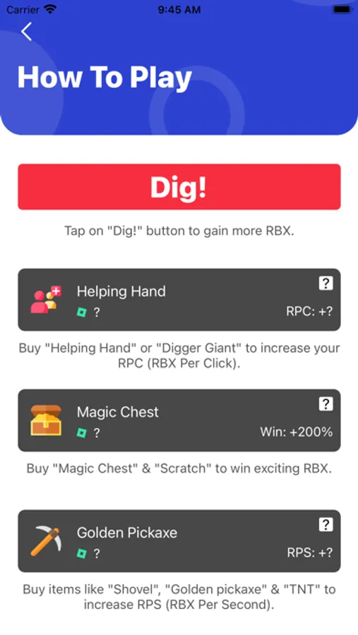 This is an unofficial application. This application is not affiliated in any way with Roblox Corporation. This app been designed as a free robux saver tool to help Roblox players and fans and it's NOT contain any free robux