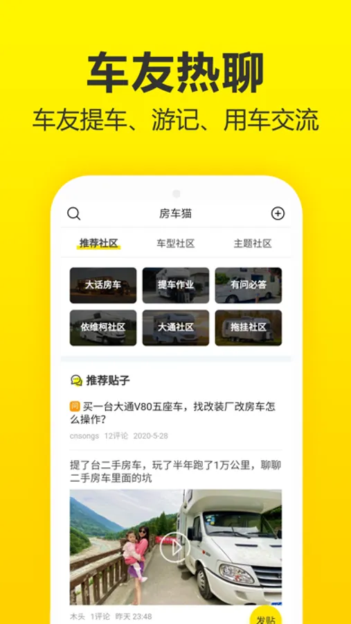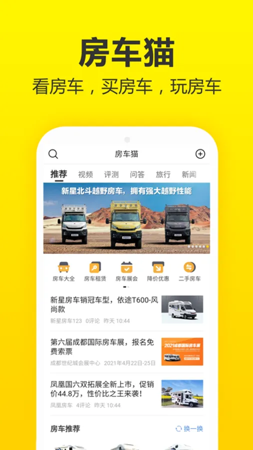 最新房车资讯、精彩评测视频、房车报价大全、二手房车交易、房车租赁信息、车友互动交流尽在房车猫APP。