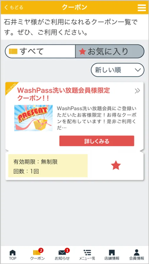 当社の公式アプリ「カーウォッシュスタジアムPASS」ではWashPass(セルフ洗車機 洗い放題会員)、WashPay、Washプリカのお申し込み・お支払い・ご利用いただけます。また、お得なクーポンや各種メニューの割引情報などを配信しております。