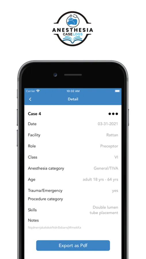 You can’t always count on a billing company to keep track of your case logs. This app is a very simple, easy to use app that stores all the cases performed by the provider. This is not just a count of the number of cases with an arbitrary case code but a more in-depth record of typical cases and patients that the provider handles on a day to day basis. The dashboard displays all cases in an easy to read pie chart as well as a bar graph with all the cases done on each day. Each bar can be selected to display the cases done for that day. With simple clicks, the provider can enter case information quickly and efficiently (because we all know the last thing we want to do is chart more). Cases are stored in the “my cases” tab. The search option allows for quick location of certain cases and review of details entered by the provider. Free text notes can be added by the provider to include any additional details about the case not addressed in the point and click options. This can serve as a great reference for repeated case setup and management. This app will also serve as a great log of clinical skills that are performed by the anesthesia provider such as arterial lines, central lines, epidurals, etc. future employers can look at this log and see the exact number and types of skills performed by the provider. The entire case log can be exported and sent via email link to the provider or anyone wishing to review the case log. This app will be maintained and expanded/revised as deemed necessary by the users. Comments and concerns can be voiced through the app in the easy to use online form. Users are cautioned not to use any patient specific information that would violate HIPAA.