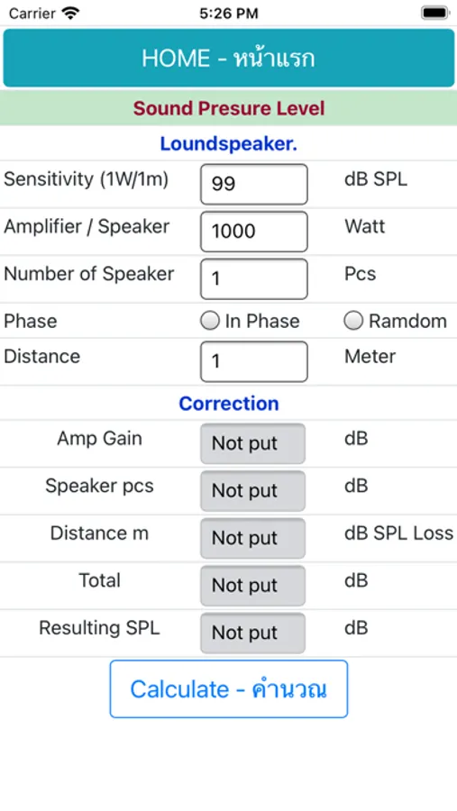 Gain Struture, dBSPL ,Limiter, Hummidy ,Phase ,Required amplifier power,Time