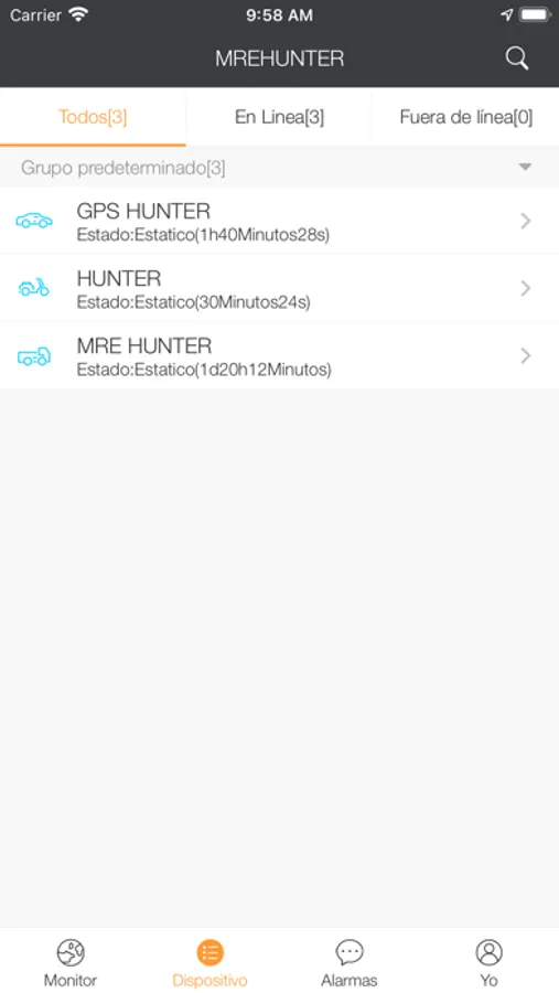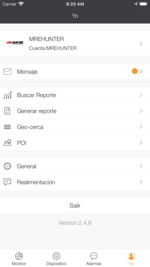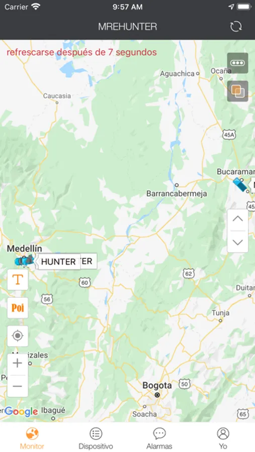 La aplicación es un sistema de rastreo satelital, puede iniciar sección con su usuario asignado por MRE HUNTER, puede rastrear en tiempo real su dispositivo, ver el historial de recorrido, ver la información de su dispositivo y modificarlo.