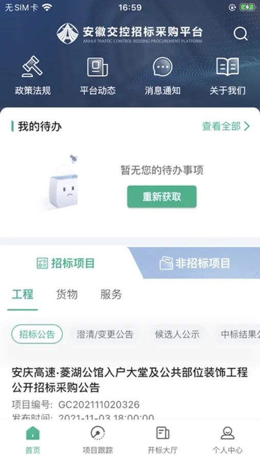 安徽交控APP让招标人能随时了解项目进展、最新政策法规、平台动态等信息