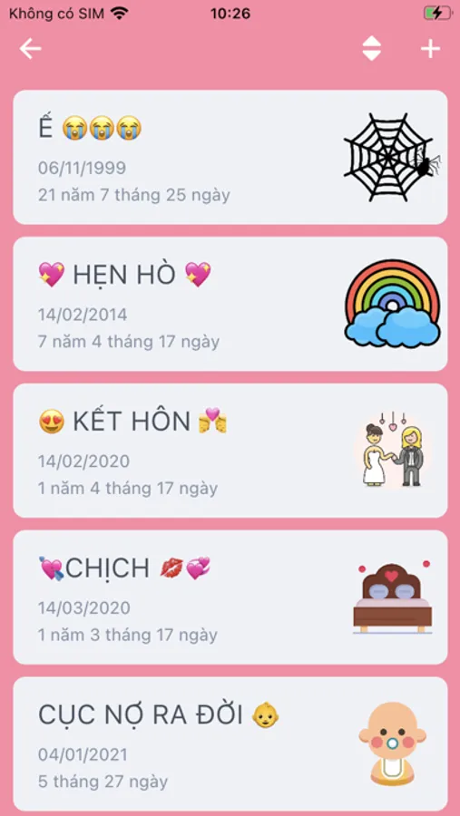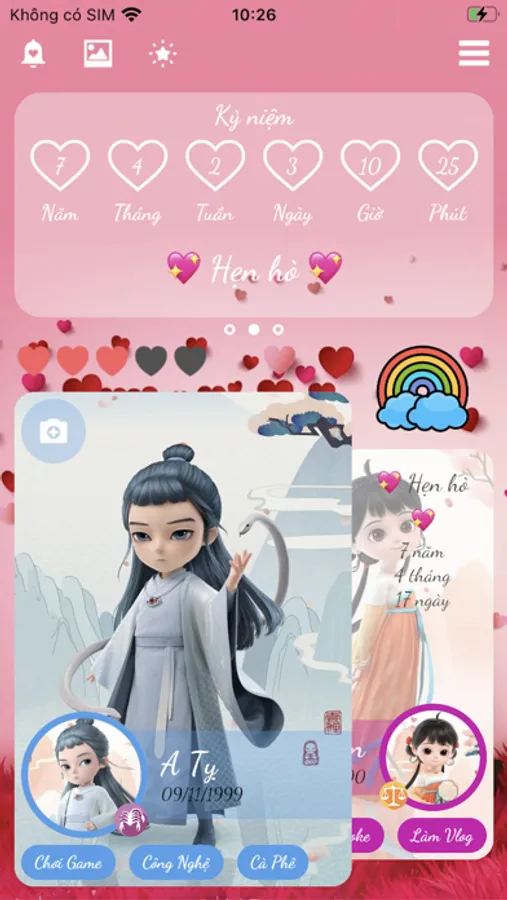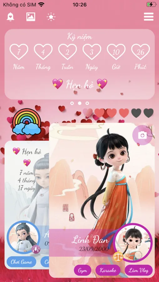 - Tùy chọn nhắc nhở ngày kỷ niệm khi tròn mỗi 100 ngày, 1000 ngày hoặc hằng năm