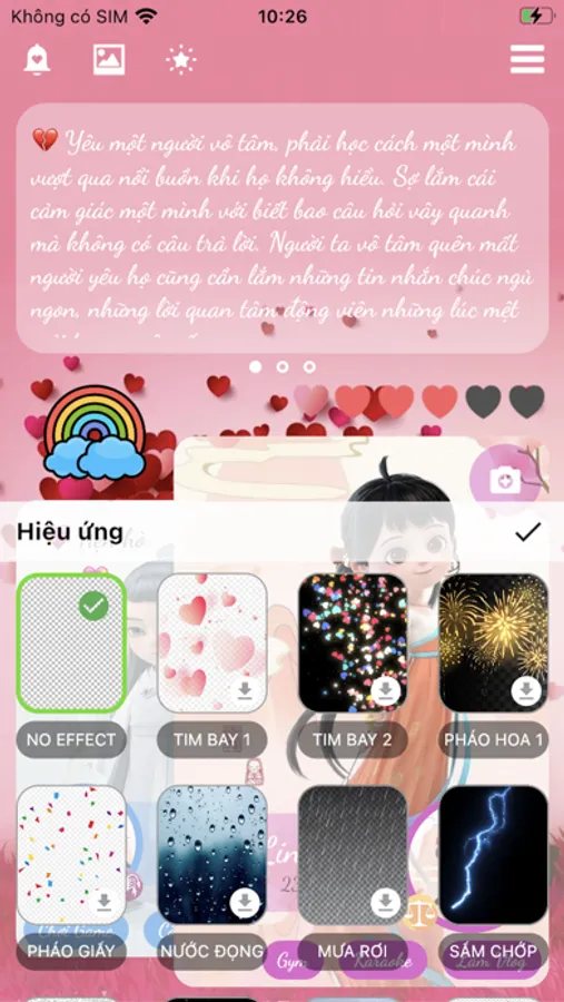 * Hình nền ứng dụng được thay đổi tùy người dùng với các hiệu ứng đẹp phù hợp với tâm trạng, cảm xúc sự kiện