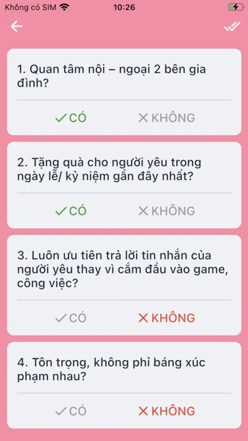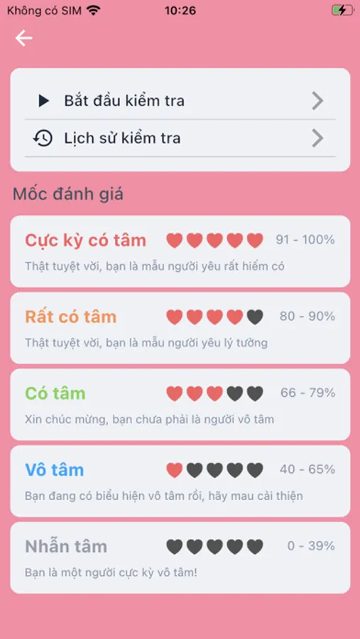- Vì thế, app này sẽ giúp bạn biết được mức độ vô tâm của bản thân thông qua việc trả lời bộ câu hỏi trắc nghiệm được đúc kết qua kinh nghiệm của tác giả. Cũng như nhắc nhở người dùng sắp đến ngày kỷ niệm cần nên làm gì để khiến người yêu có được cảm giác an toàn, hạnh phúc.
