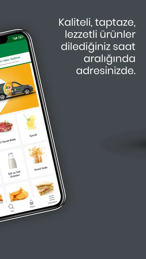 Uygulamayı indirip üyeliğinizi oluşturduktan sonra File’nizi istediğiniz ürünlerle doldurabilirsiniz. Siparişinizi teslim almayı istediğiniz gün ve saati seçtikten sonra, son aşama olan ödeme ekranı sizi karşılar. Dilerseniz kart bilgilerinizi kaydederek sonraki siparişlerinizi daha hızlı tamamlayabilirsiniz.