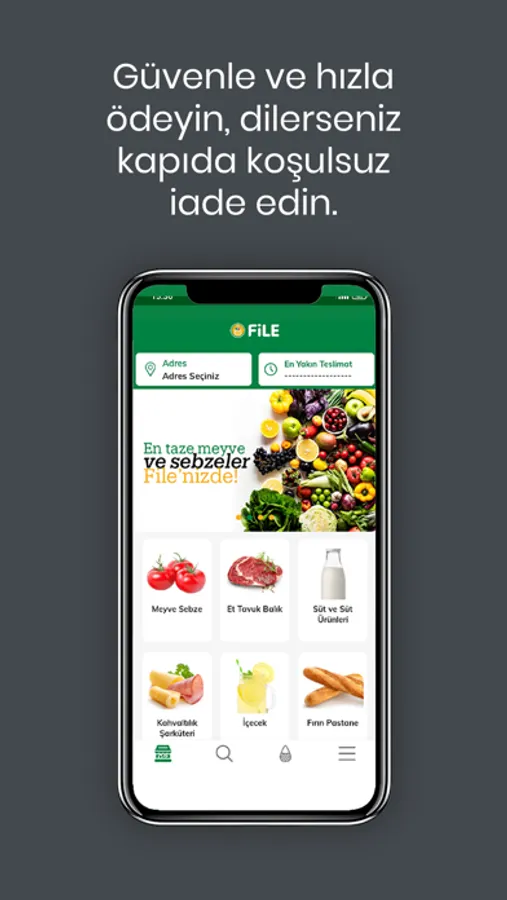 İhtiyacınız olan her şey File Market mobil uygulaması ile adresinize geliyor. Kendi markalı ürünlerimizin yanı sıra yüzlerce ulusal marka ürün uygulamamızda sizleri bekliyor. Üstelik sipariş vermek yalnızca birkaç basit adımdan oluşuyor.