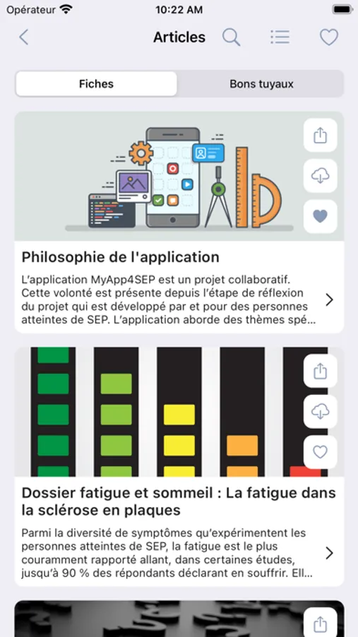 Besoin d’informations, de ressources pertinentes, de trucs et astuces, de « bons tuyaux » d’autres personnes atteintes de la maladie ? Vous trouverez cela sur MyApp4SEP.