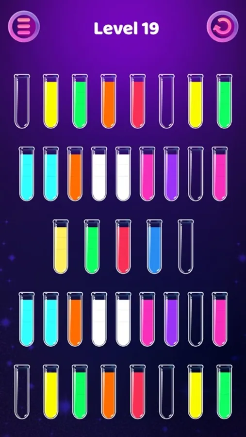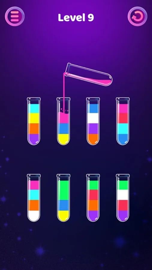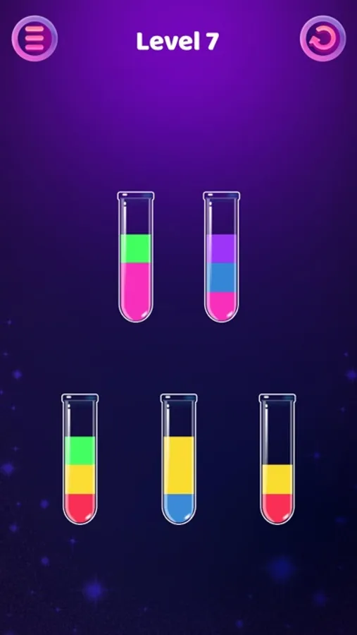 • Rule: You need to pour water of different colors into tubes to convert each other until each tube is filled with only one color of water.