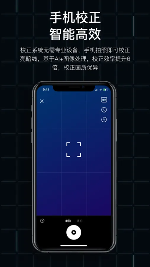 基于自研的高效图像处理算法及向导式交互操作,不需要专业的相机和专业的培训,普通用户使用App对显示屏进行扫描拍摄,即可完成屏幕亮暗线校正。智能高效,省时便捷。