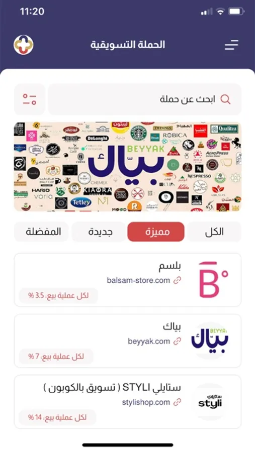 1. استعراض حملات المتاجر المعلنة في منصة لينك عربي.