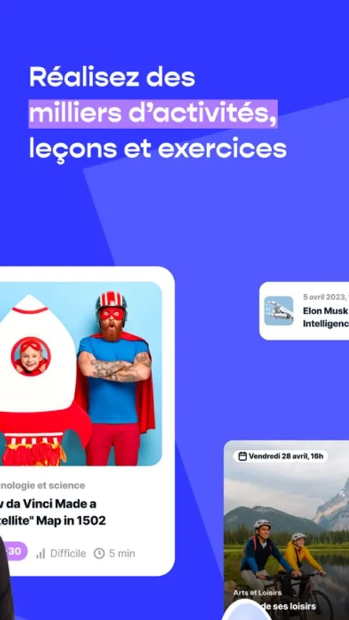 Every day new varied, original and topical content as well as live sessions to evaluate your skills and see your progress!