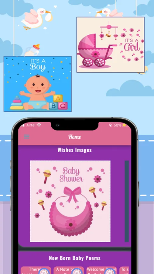 Shareability: The app enables you to share wishes, e-cards, quotes, poems, images, GIFs, and memes effortlessly with your friends and family. Whether it's through SMS, social media platforms, or image status updates, you can easily spread the joy and excitement of a new baby's arrival.