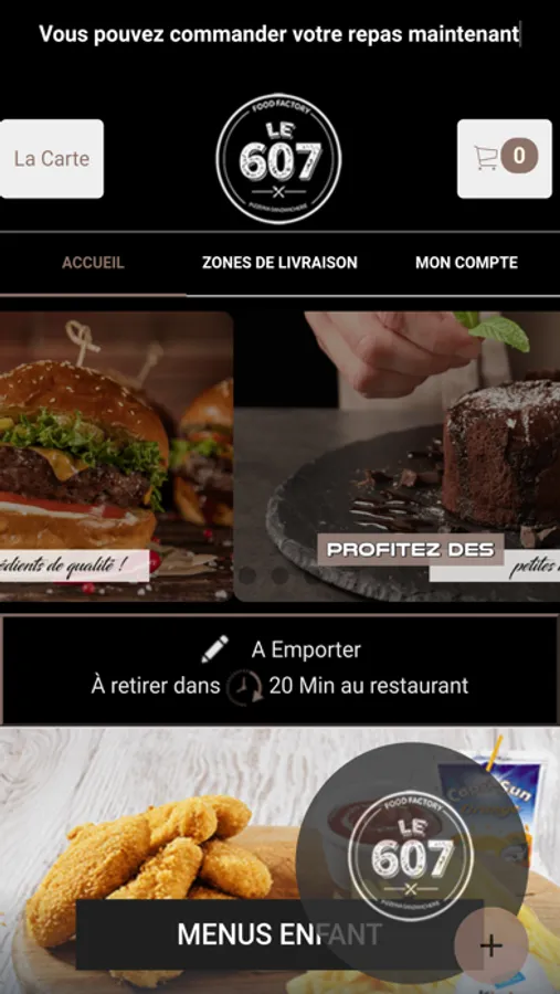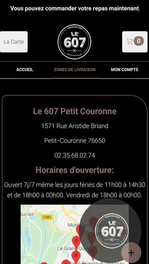 L'application Le 607 Petit Couronne vous permet de commander en ligne ou par téléphone via votre application. Vous pouvez consulter notre carte et choisir vos produits.