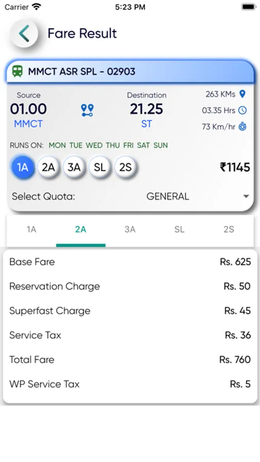 Train between Stations: Get all the info in this tab with Trains availability, Fare, coach details, Distance between locations, and much more.