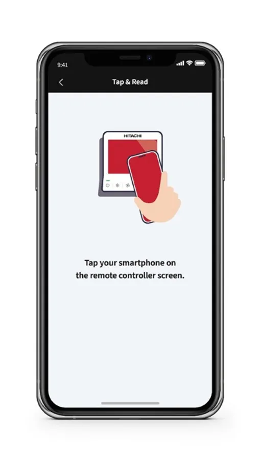 2. Bring your phone close to the NFC symbol on compatible Hitachi air conditioning equipment (2)(3). airCloud Tap will read and display the current settings on your phone screen.