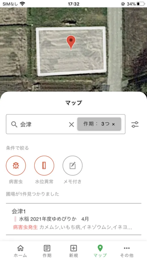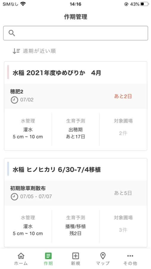 圃場単位ではなく、作期(品種、移植日)単位で管理を行うことができます。
