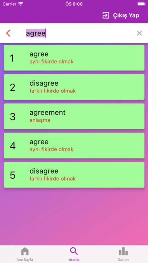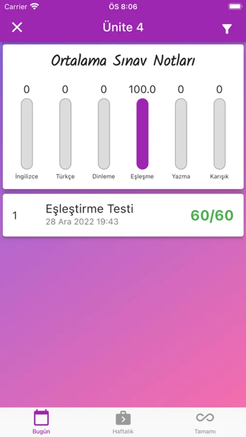 Veliler ve öğrenciler sınav sonuçlarını günlük, haftalık ve tamamını ayrı ayrı olarak ve sınav tipine göre filtreleyerek görebilmektedirler. Program bir sözlük olarak da kullanılabilmektedir. Her bir öğrenci bu uygulama sayesinde tatilde de olsa, bir öğretmen tarafından eğitiliyor kalitesiyle, kelime hazinesi gelişmiş olarak tatilden dönerek okula başlayacaktır.