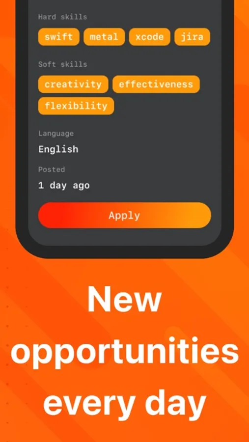 Try the first iOS app for iOS developers, made with SwiftUI and specially for iOS engineers. Find your ideal job, start your own project, compare yourself with other developers, grow and reach your potential.