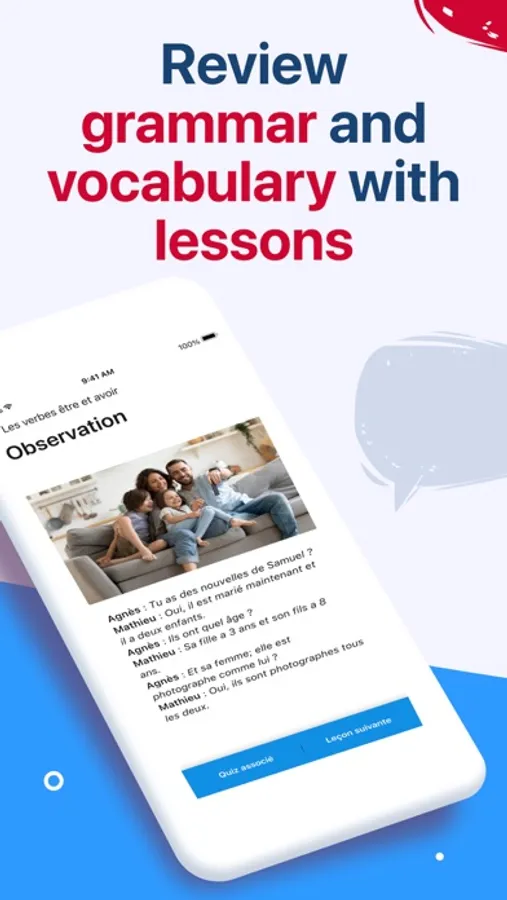 - more than 400 complete lessons with dialogues to listen to and examples to understand grammar rules, conjugation and learn vocabulary