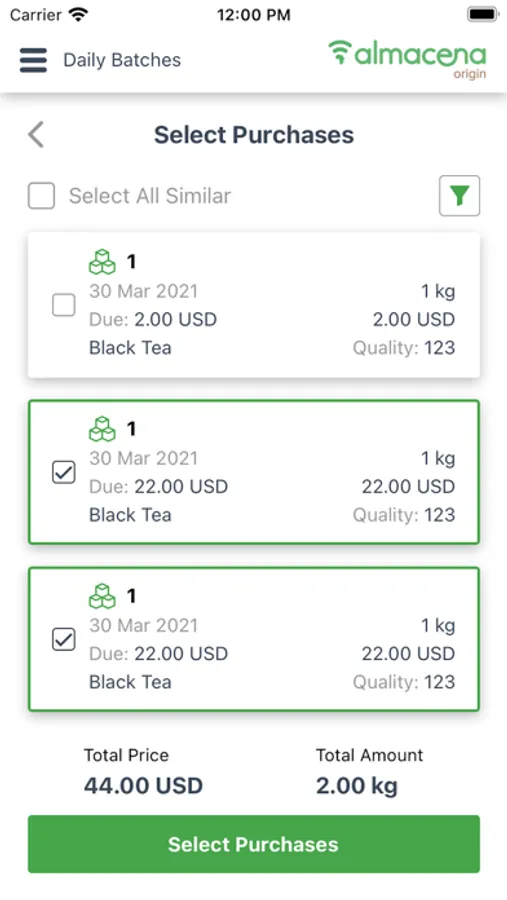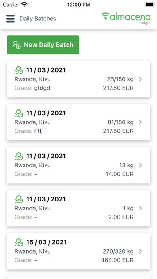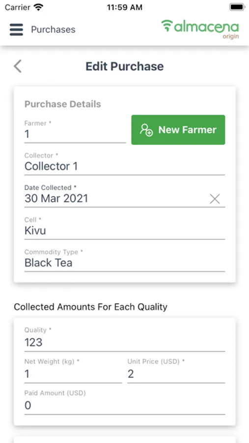 The coffee purchases from the farmer on a daily basis will be recorded in the system with the relevant