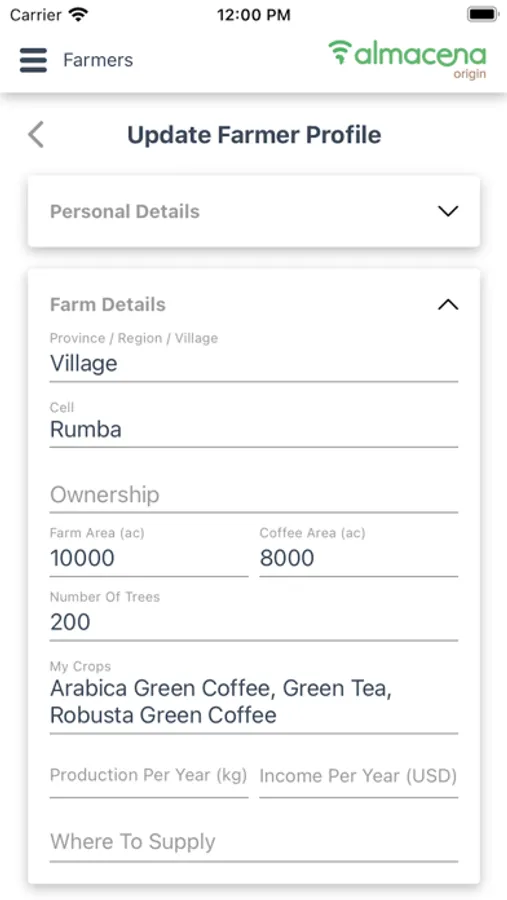 As producer you will be able to add the basic details for your farmers and then to enrich them