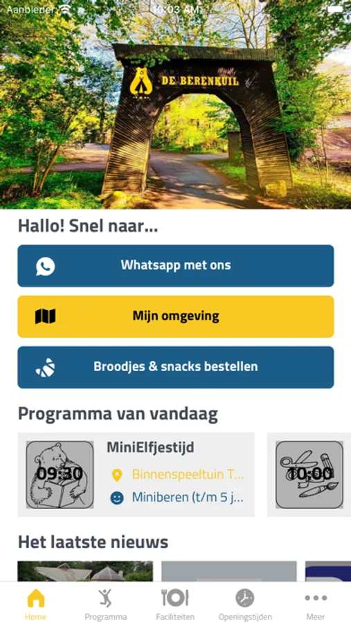 Landgoed De Berenkuil in Grolloo is een kindercamping middenin het natuurlijke hart van Drenthe. Aan de rand van bluesdorp Grolloo biedt De Berenkuil u een autovrije camping welke geheel gericht is op kinderen. Vanaf half 10 's ochtends tot 8 uur 's avonds verzorgt ons recreatieteam een uitgebreid recreatieprogramma voor diverse leeftijden. En natuurlijk is er om 7 uur Berenpret! Verspreid over onze camping in Grolloo vindt u meer dan 25 grote en kleine speeltuinen en op de warme dagen geeft het zwembad of de speelvijver de nodige verkoeling. Bij minder weer kunnen uw kinderen klimmen en klauteren in onze nieuwe binnenspeeltuin.