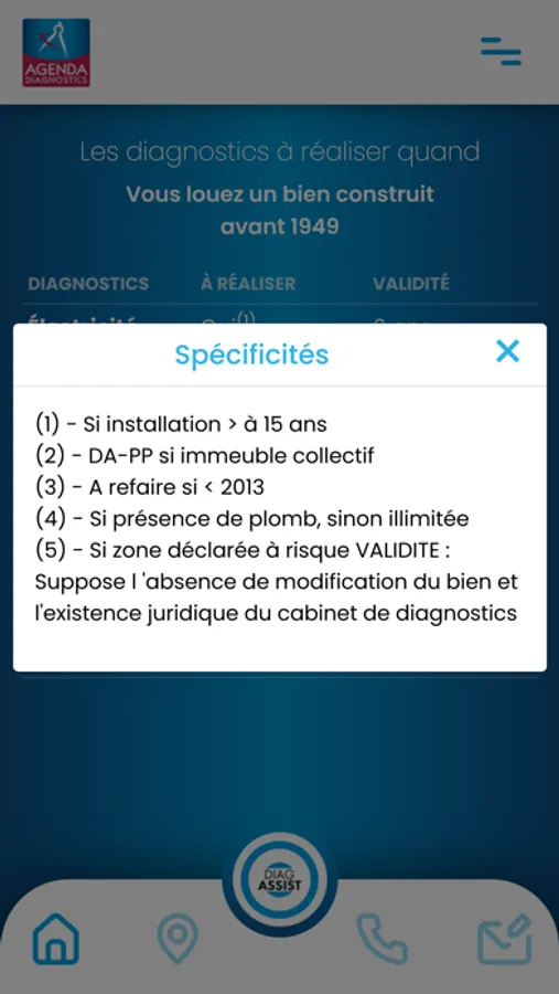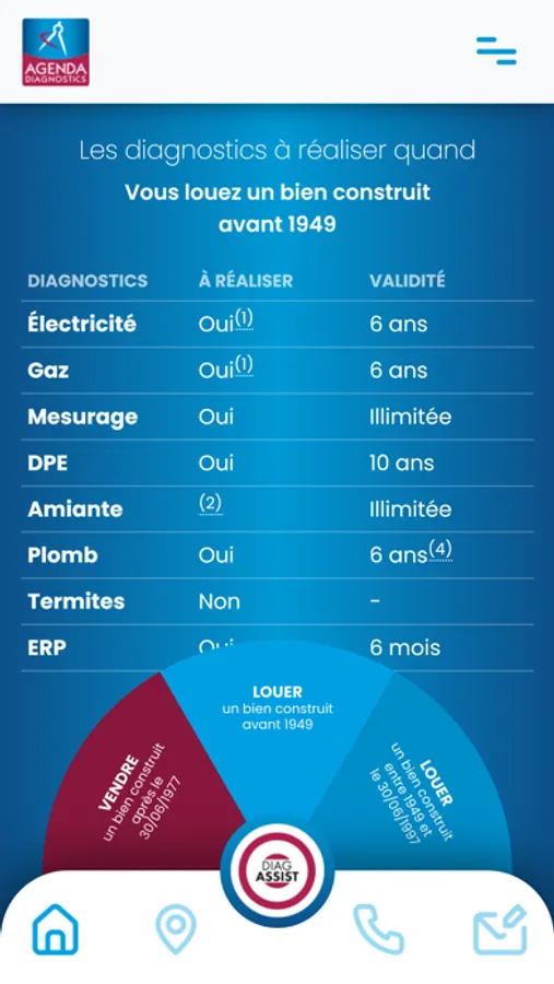 Les opérateurs d’Agenda Diagnostics vous apportent leur expertise et leur expérience afin de vous aider à mieux comprendre les enjeux des contrôles, repérages et diagnostics et ainsi d’anticiper les problématiques inhérentes à votre projet, qu’il s’agisse de sécurité sanitaire et environnementale ou bien de votre responsabilité de gestionnaire, de vendeur ou de bailleur de biens immobiliers à usage professionnel ou d’habitation.