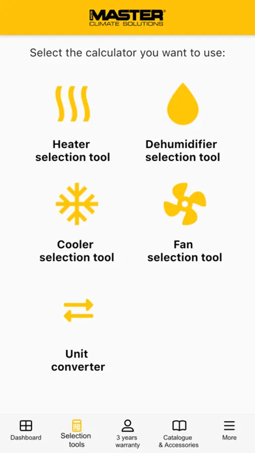 This app is suitable for many users working in a wide range of industries but also for individuals and home applications. Find out our best recommendations when you want to heat, cool, dry or ventilate any room or working area. The Master App includes clever selection tools to use before purchase. Try it now!
