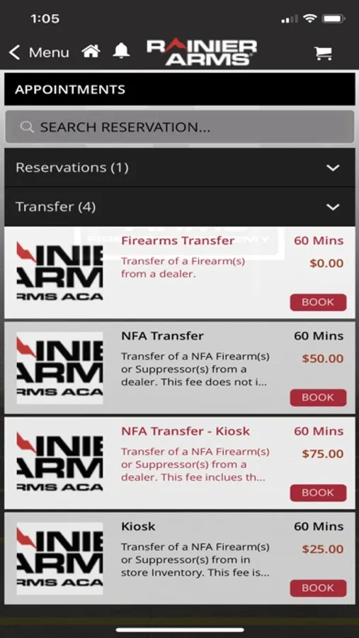 Note: Please note that you will not be able to purchase Firearms through the mobile app. You can do that online on the Rainiers Arms website or in person at the store.