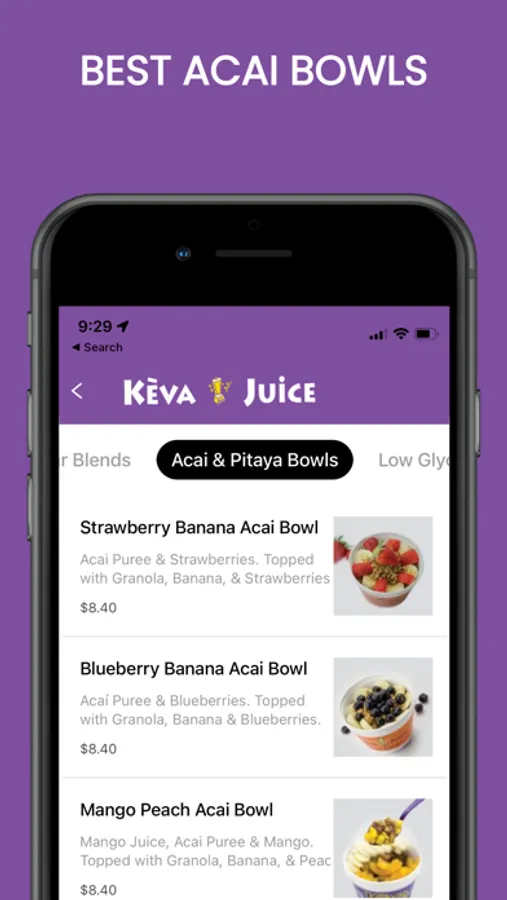 The Keva Juice app is a convenient way to pay in store or skip the line and order ahead. Rewards are built right in, so you'll collect Stars and start earning free drinks and food with every purchase.