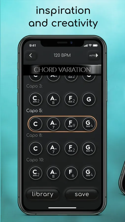 ChordFire shows you the world of chord variations from add9, sus2, min7 min11 and many more.