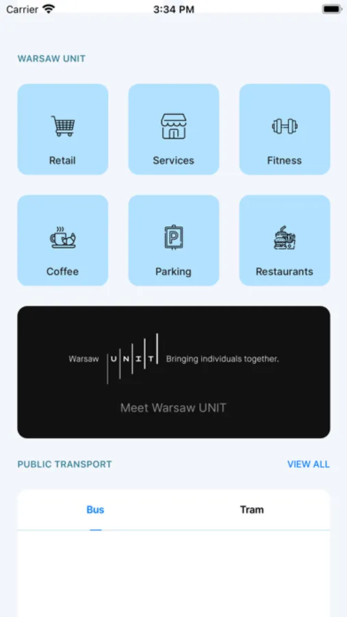 The Warsaw Unit is a state-of-the-art building, which actively strives to implement advanced technologies in order to create a friendly, yet effective business environment. The Warsaw Unit mobile app is one of the sophisticated tools allowing for optimalization of the relations between the building, its tenants and the city.