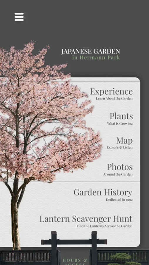 This App celebrating the 80th anniversary of the Consulate-General of Japan in Houston and the 30th anniversary of the Japanese Garden is made possible by the Consulate-General of Japan in Houston and Japan-America Society of Houston, Inc. with support from Houston Parks and Recreation Department and Hermann Park Conservancy.