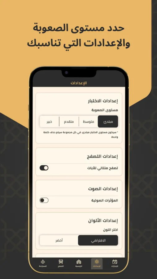 You have to guess the missing Arabic words from the randomly arranged hex-cell letter block in the middle of the screen.