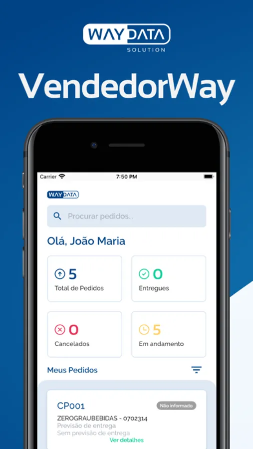 Aplicativo de gestão para o Vendedor feito pela Way Data Solution, onde os clientes poderão ter o controle das entregas, informações dos pedidos, entre outros.